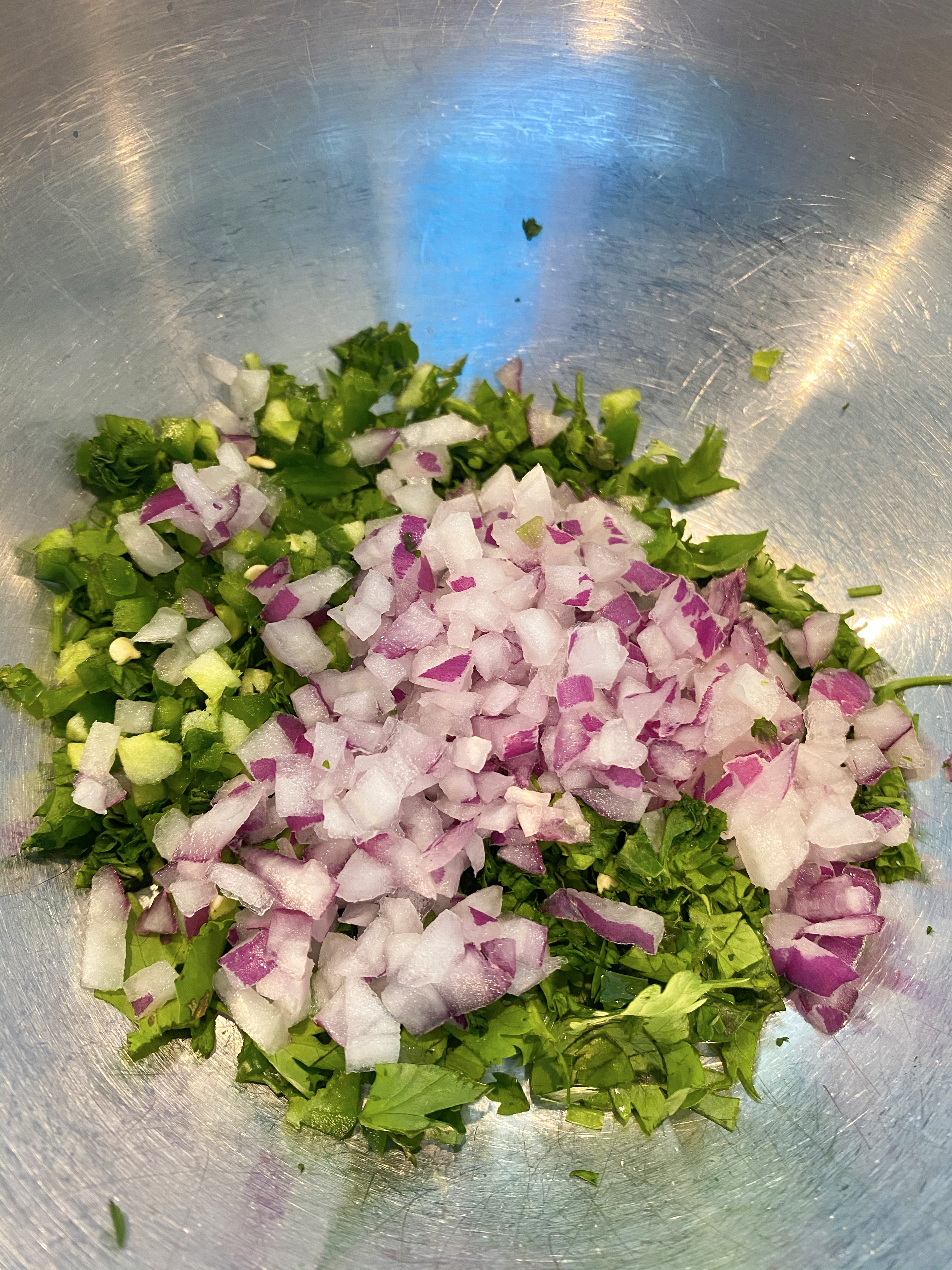- 1 small green bell pepper (or 1 long hot green pepper or poblano pepper)